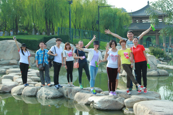 活動開始前,大家就已換上運動衣和運動鞋,精神抖擻,整裝待發(fā)。下午三點半活動正式開始。路線規(guī)劃是從曲江遺址公園西門出發(fā),繞著曲江南湖行走一圈,再回到起點。曲江南湖是古都長安有名的風(fēng)景區(qū),曲江南湖周圍綠樹環(huán)繞,空氣清新,各種吸引眼球的雕塑和亭榭散布于曲江遺址公園內(nèi),選擇此地進行健步走,員工們可以邊行走邊觀賞美景,既鍛煉了身體,又放松了心情。