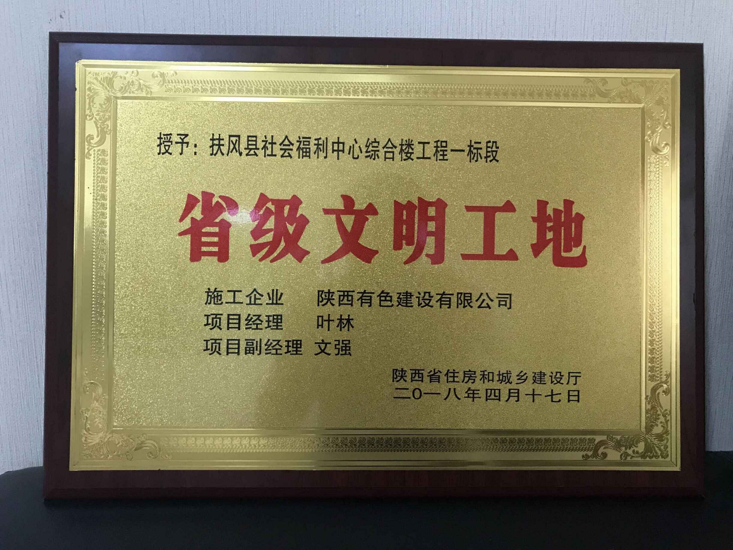 近日,從陜西省住建廳傳來(lái)喜訊,陜西有色建設(shè)有限公司承建的扶風(fēng)縣社會(huì)福利中心綜合樓一標(biāo)段工程榮獲“2018年度省級(jí)文明工地”稱號(hào)。