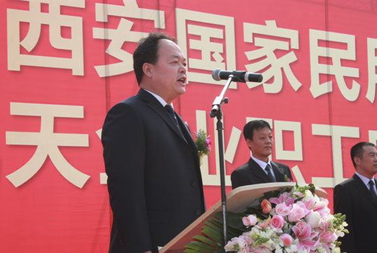 該工程總承包單位陜西有色建設(shè)有限公司董事長(zhǎng)劉俊青在儀式上講話。他鄭重承諾,公司將把該工程作為公司的重點(diǎn)信譽(yù)工程,嚴(yán)格按照?qǐng)D紙?jiān)O(shè)計(jì)要求組織施工,選派公司精干團(tuán)隊(duì),確保工程質(zhì)量、工期和施工安全,保質(zhì)保量完成各項(xiàng)施工任務(wù),讓社會(huì)滿意、讓建設(shè)單位滿意、讓開發(fā)商滿意。最后,由西安國(guó)家民用航天產(chǎn)業(yè)基地管委會(huì)副主任李巖宣布項(xiàng)目奠基開工,并與參加儀式的諸位領(lǐng)導(dǎo)為項(xiàng)目奠基培土。